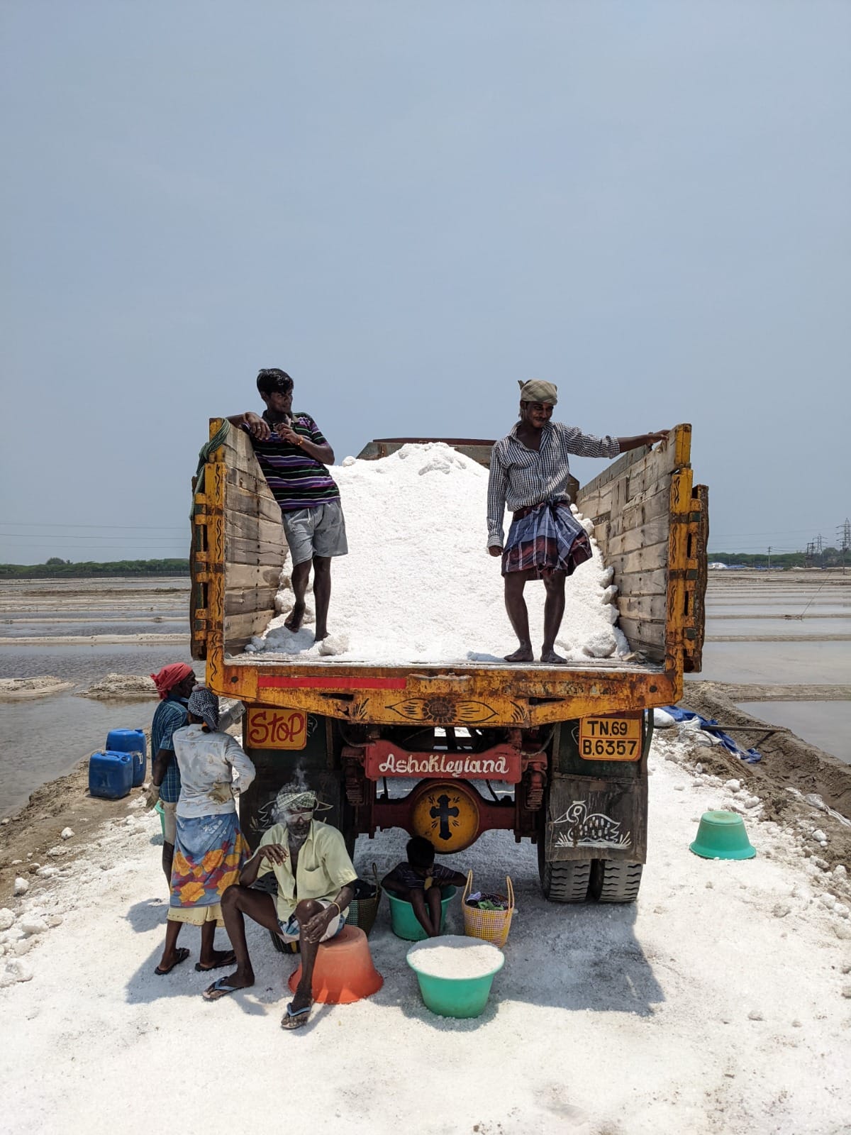 Salt is the most everyday of items in our households and bodies. Yet, the workers who produce this essential commodity are rarely in our sight. Thoothukudi, Vedaranyam and Marakkanam are the major salt-producting regions in Tamil Nadu, with the state being the third largest producer of salt in India. The conditions of work are distinct in each of the three regions. Thoothukudi, the largest salt-producing region, has relatively well-organized labour. In Vedaranyam, the workers are unorganized and labour under oppressive regimes, with the salt workers tied to the salt pans and the salt pan owners through a system of debt bondage. Marakkanam has both small holdings of salt pans which employ workers as daily wage employees and industrial salt production where the workers are employed under the respective factories. In all three regions, Dalits make up the largest section of labourers.